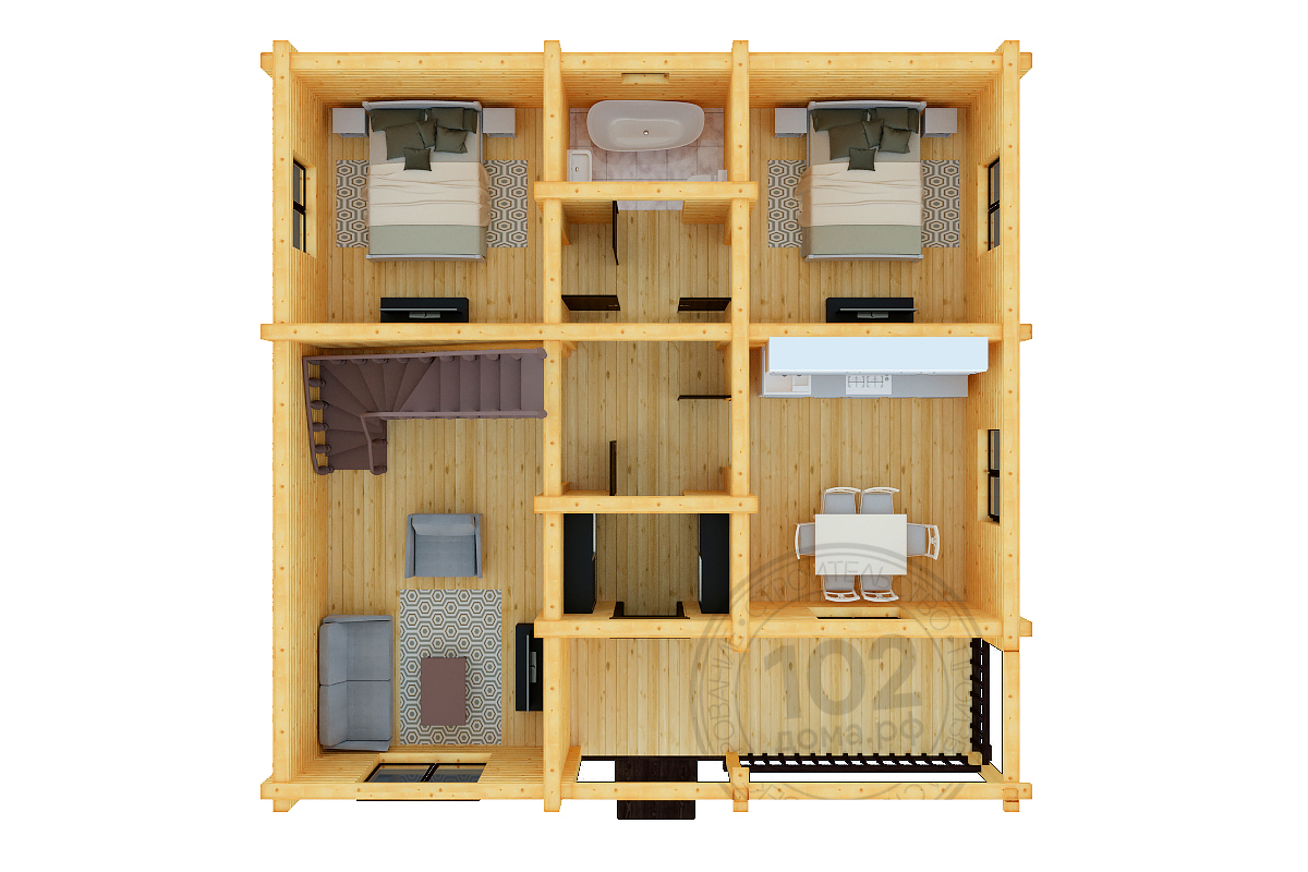 Дом из оцилиндрованного бревна "ОЦБ-120"