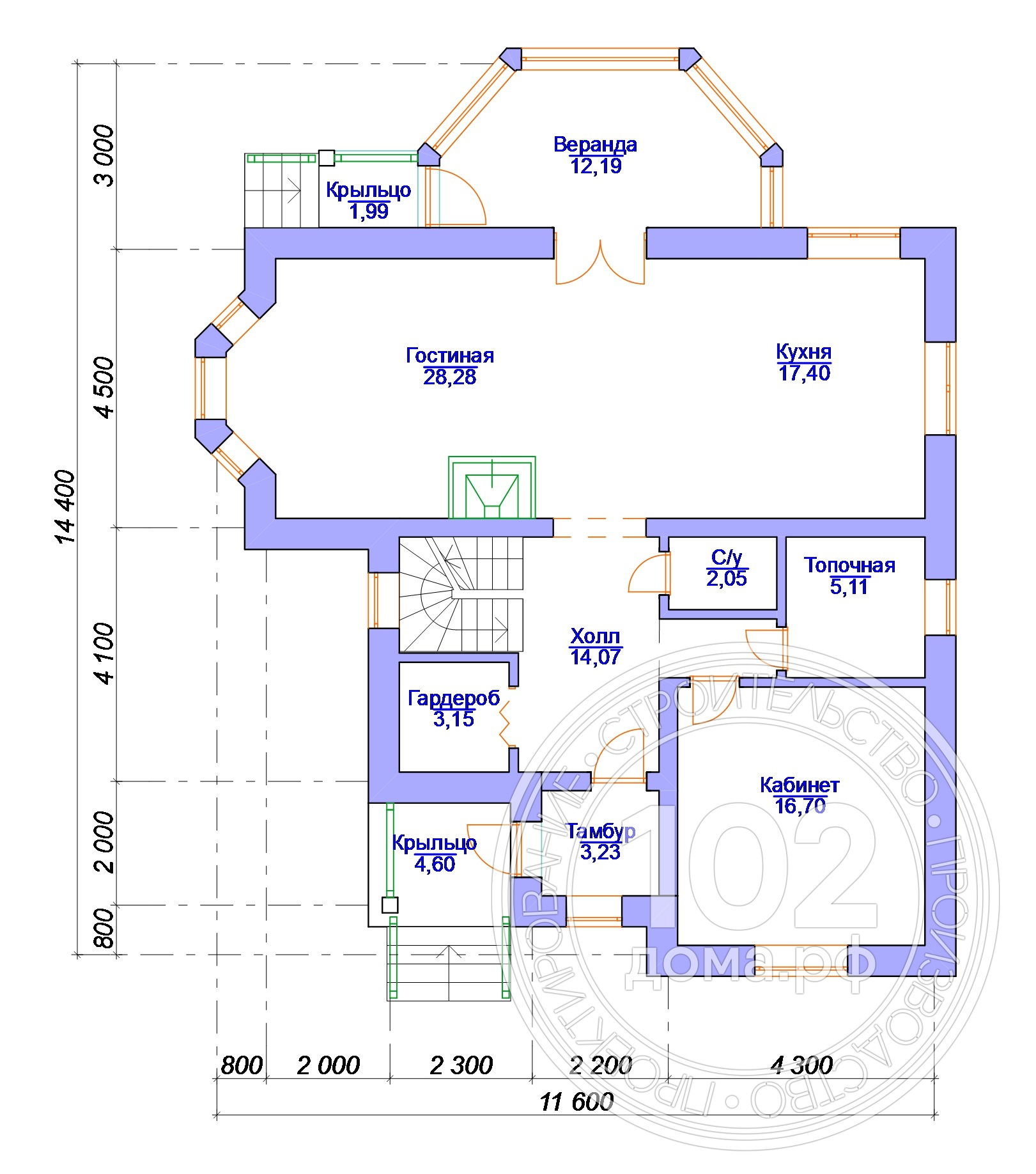 Размеры: 14,4x11,6 м