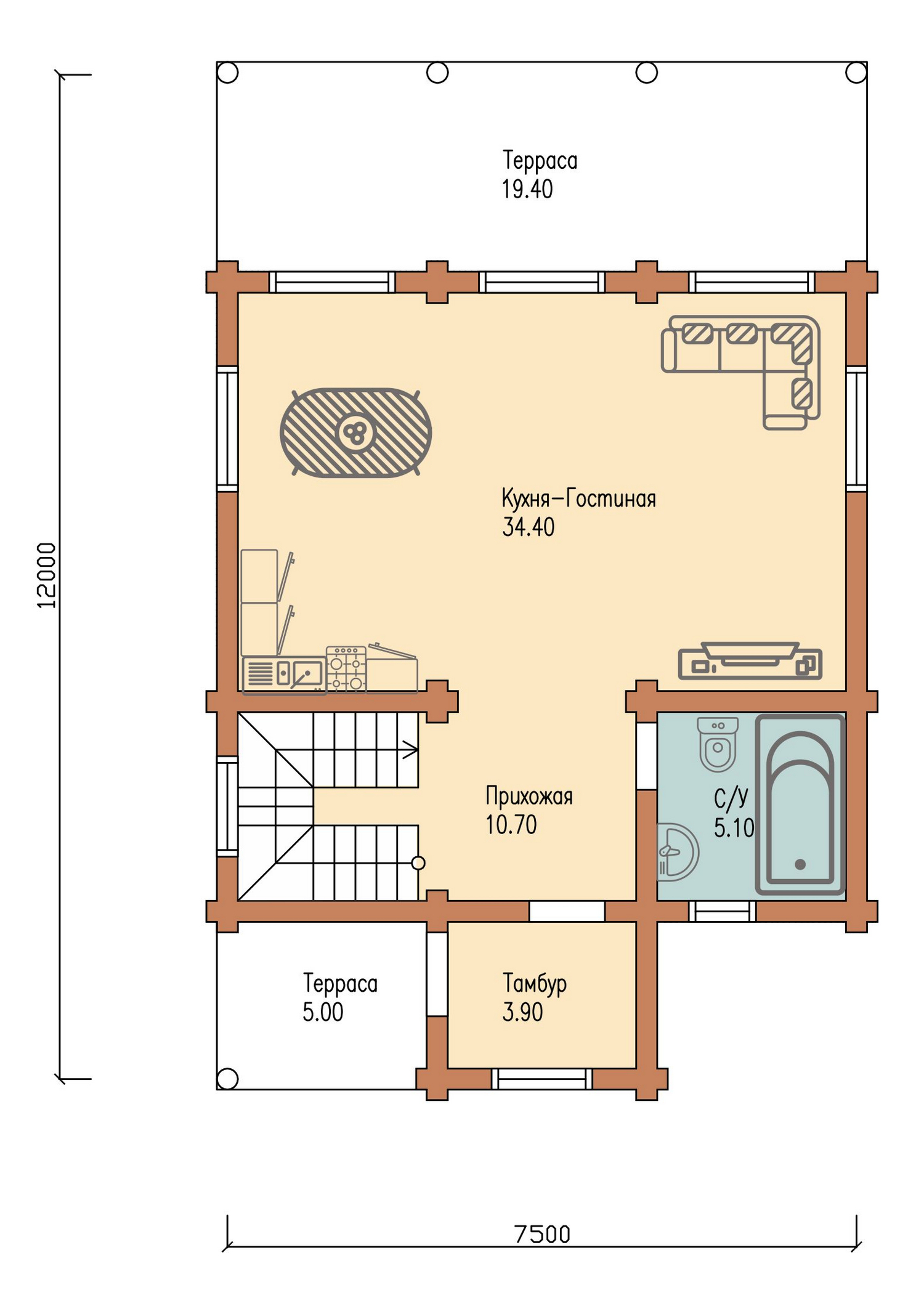 Дом из оцилиндрованного бревна "ОЦБ-120"