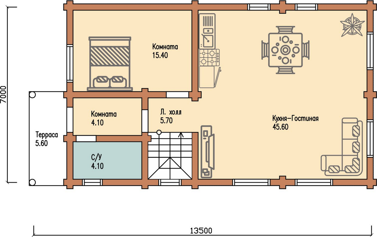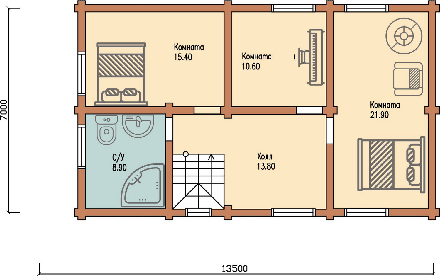 Дом из оцилиндрованного бревна "ОЦБ-120"