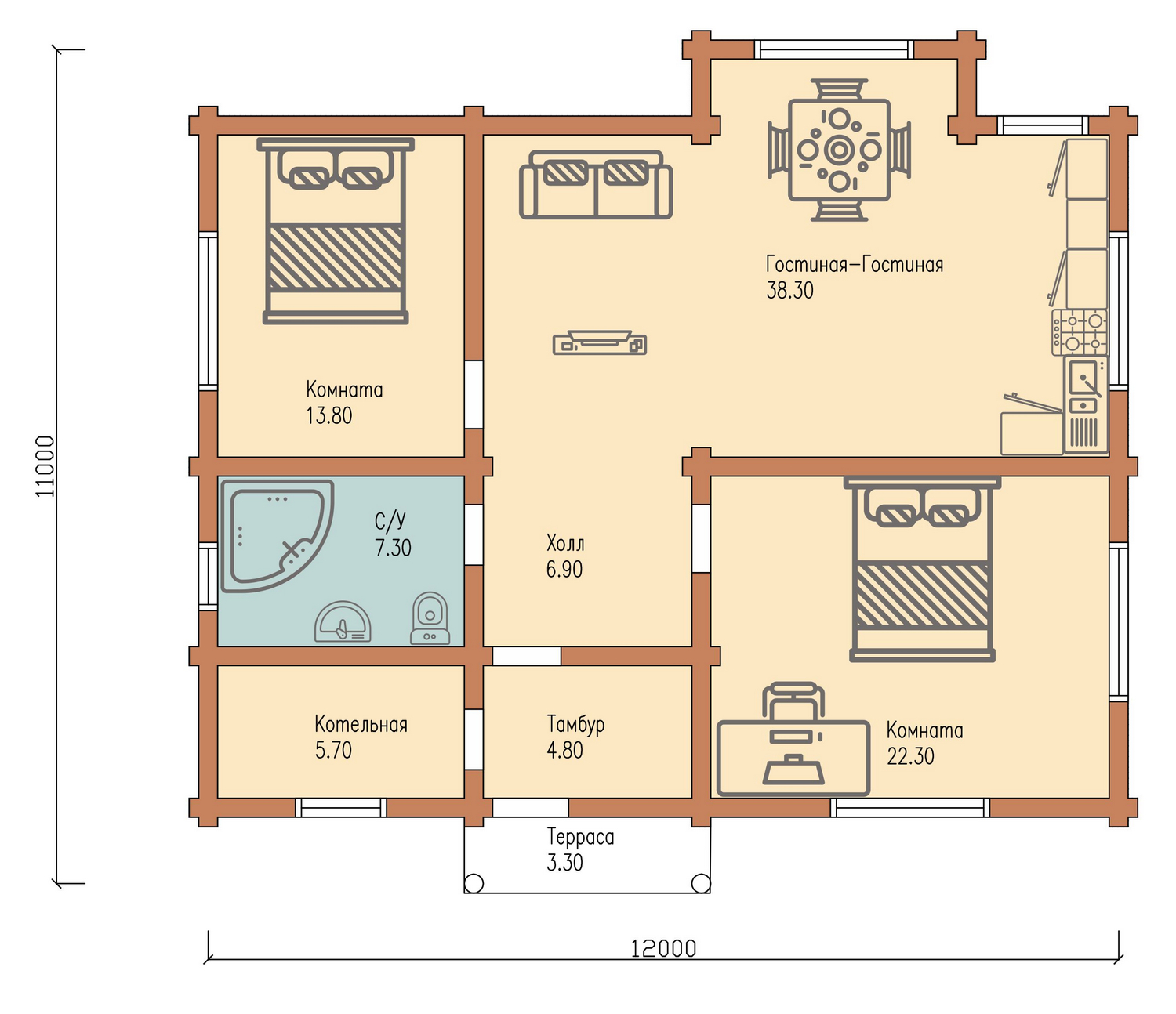 Дом из оцилиндрованного бревна "ОЦБ-120"