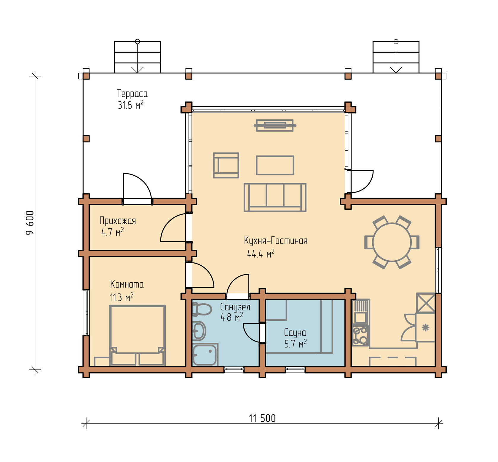 Дом из оцилиндрованного бревна "ОЦБ-120"