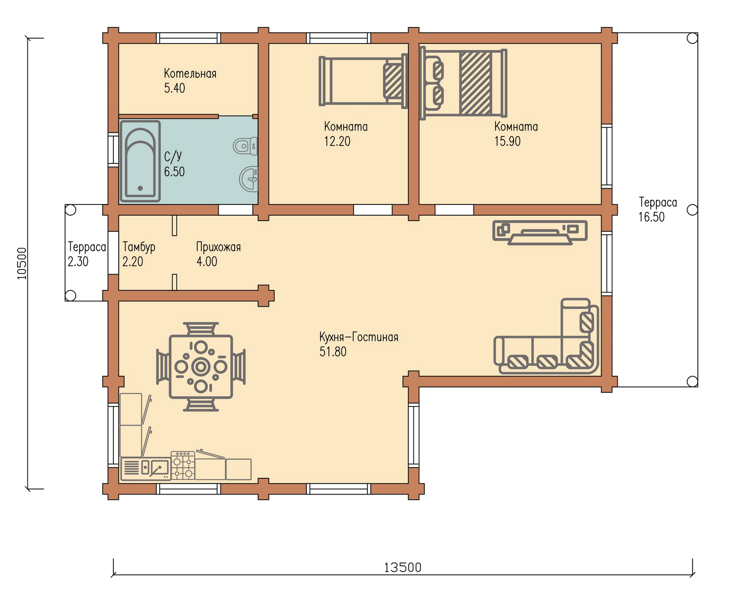 Дом из оцилиндрованного бревна "ОЦБ-120"