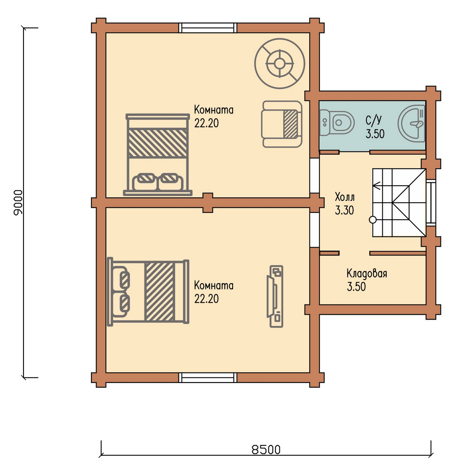 Размеры: 9х8,5 м