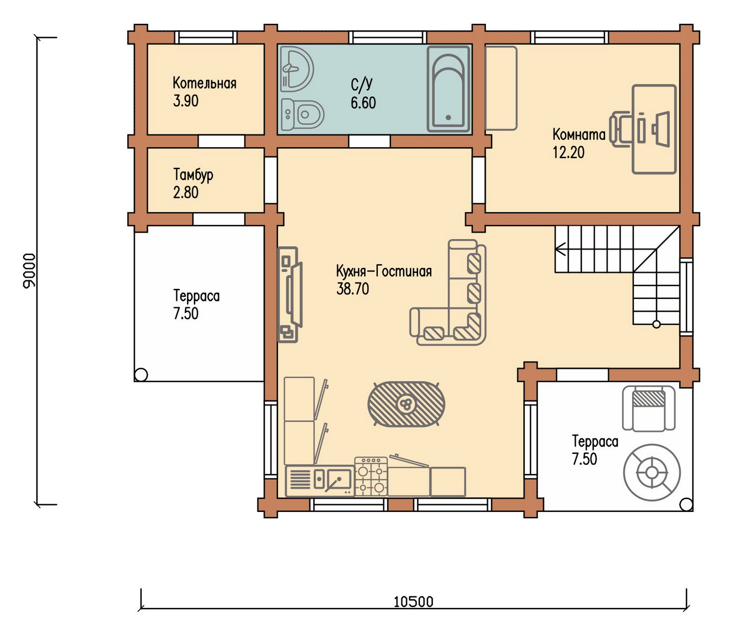 Дом из оцилиндрованного бревна "ОЦБ-120"