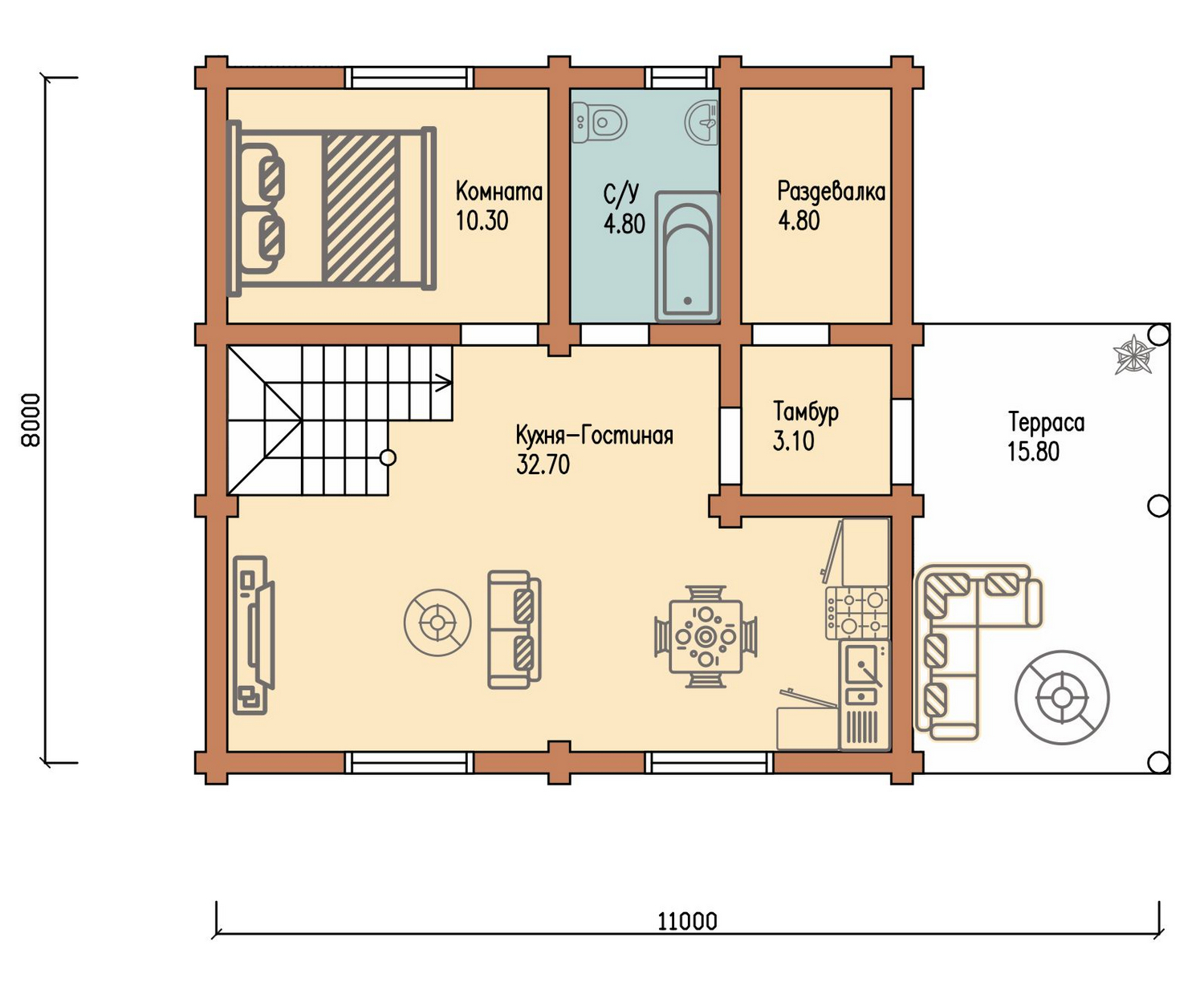 Дом из оцилиндрованного бревна "ОЦБ-120"