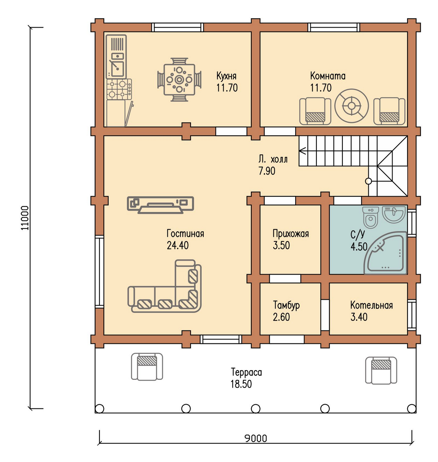 Размеры: 11х9 м