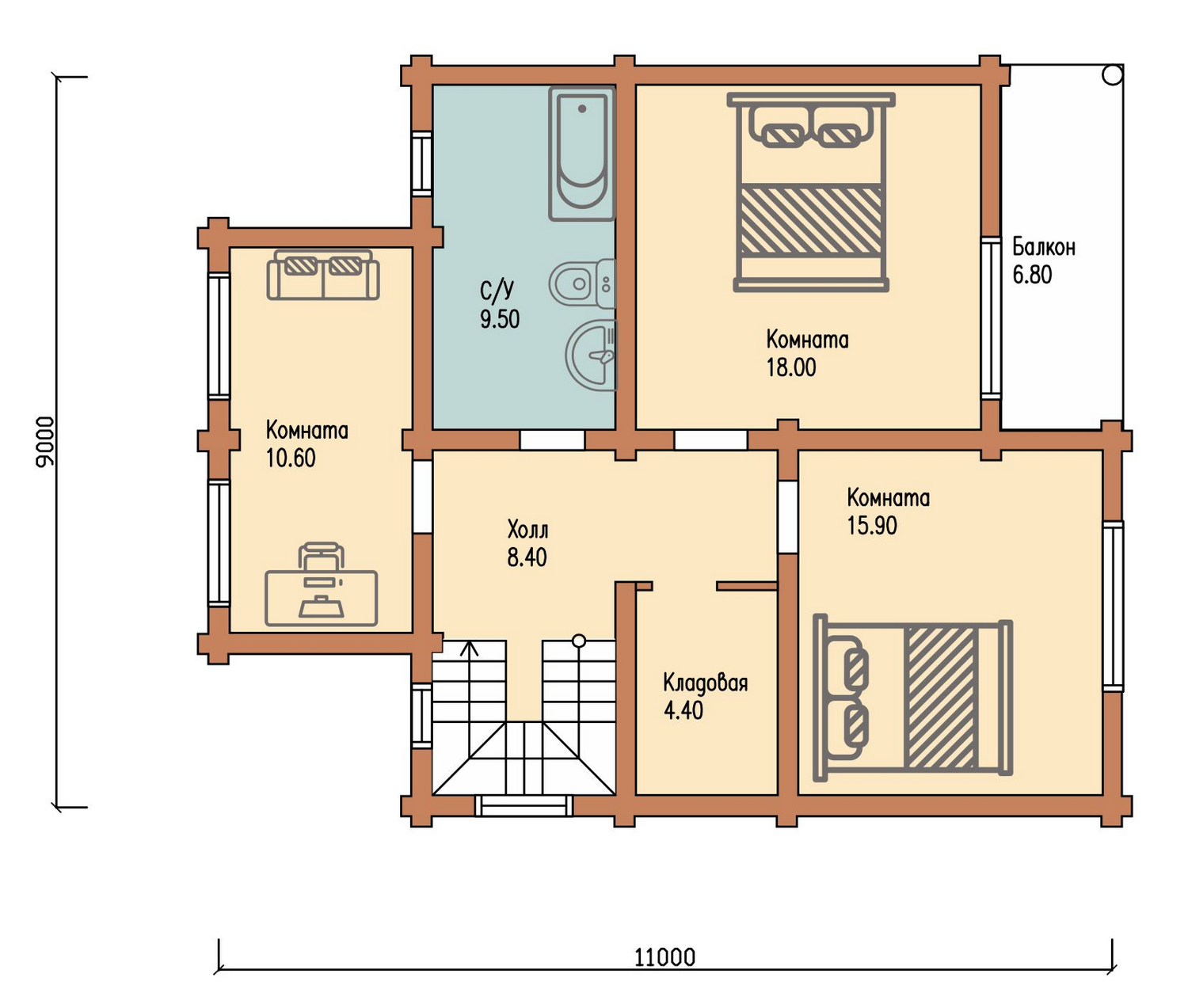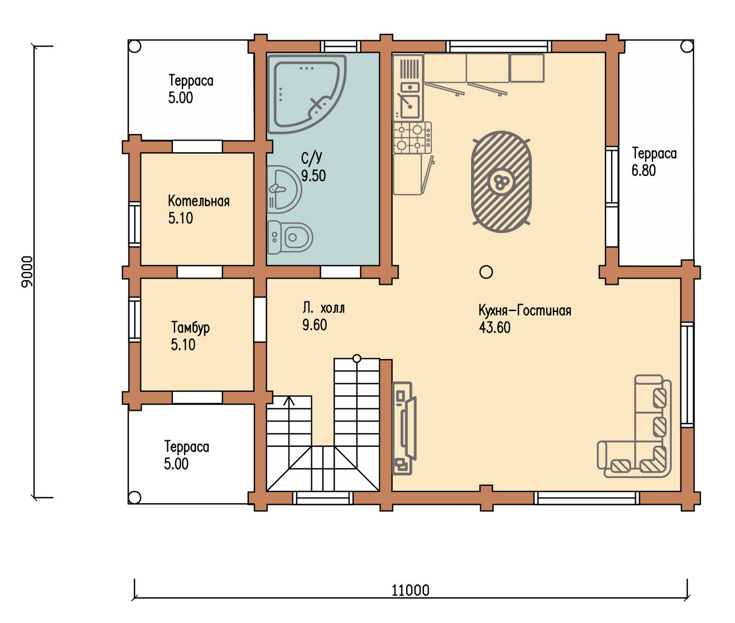 Дом из оцилиндрованного бревна "ОЦБ-120"
