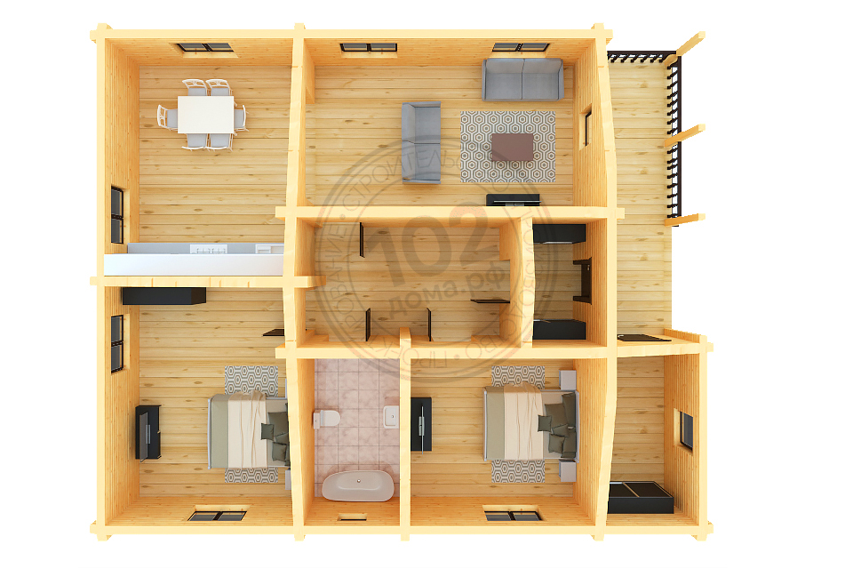Дом из оцилиндрованного бревна "ОЦБ-120"