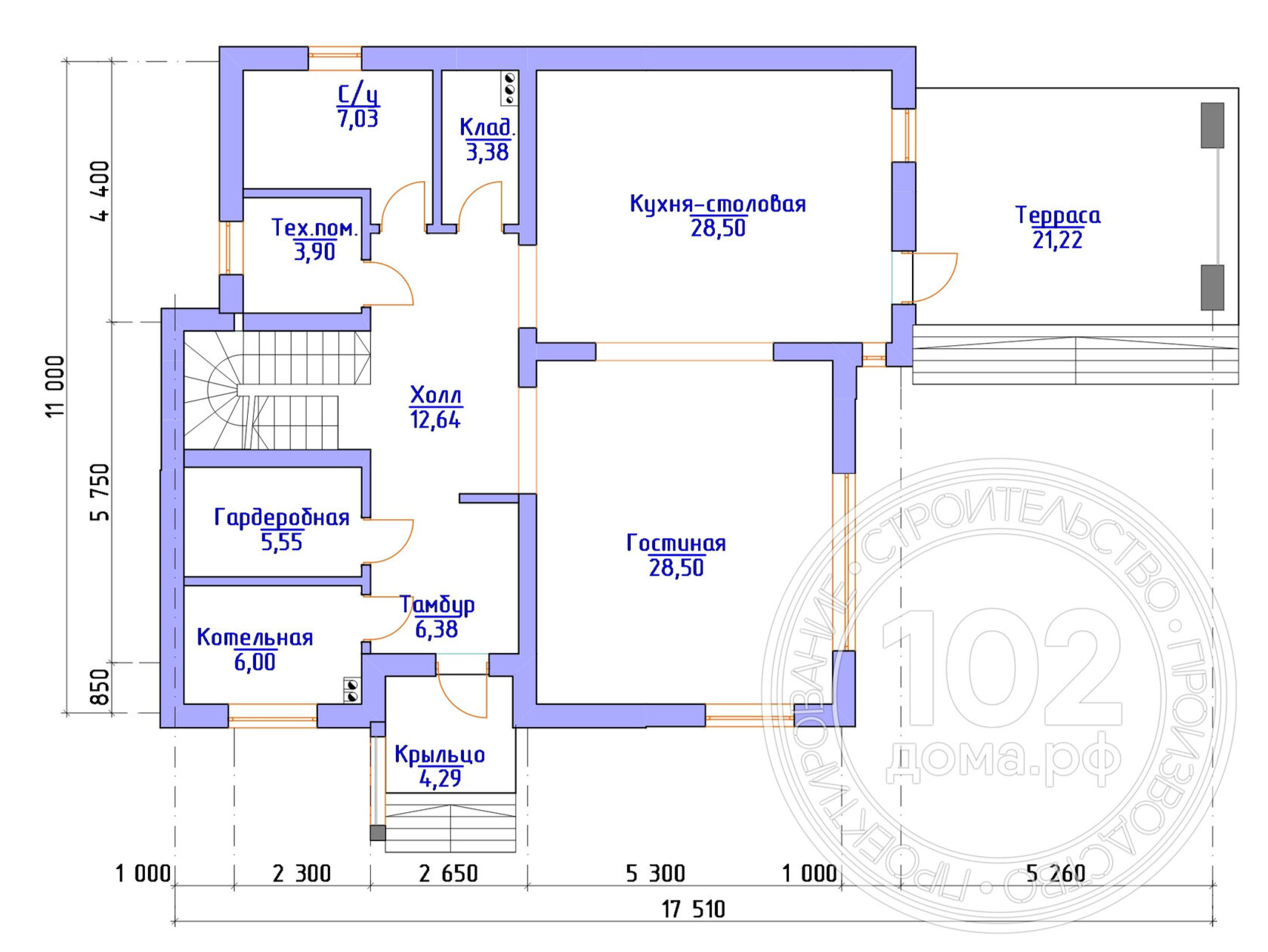 Размеры: 11x17,5 м