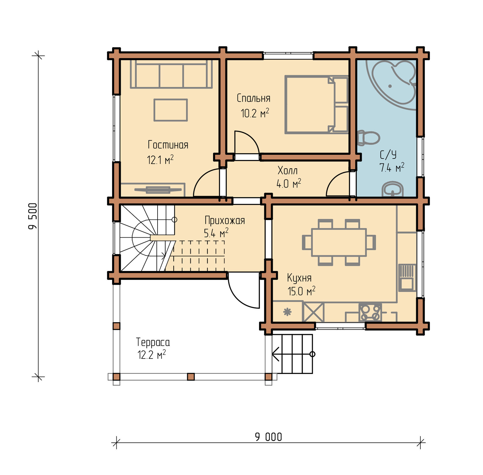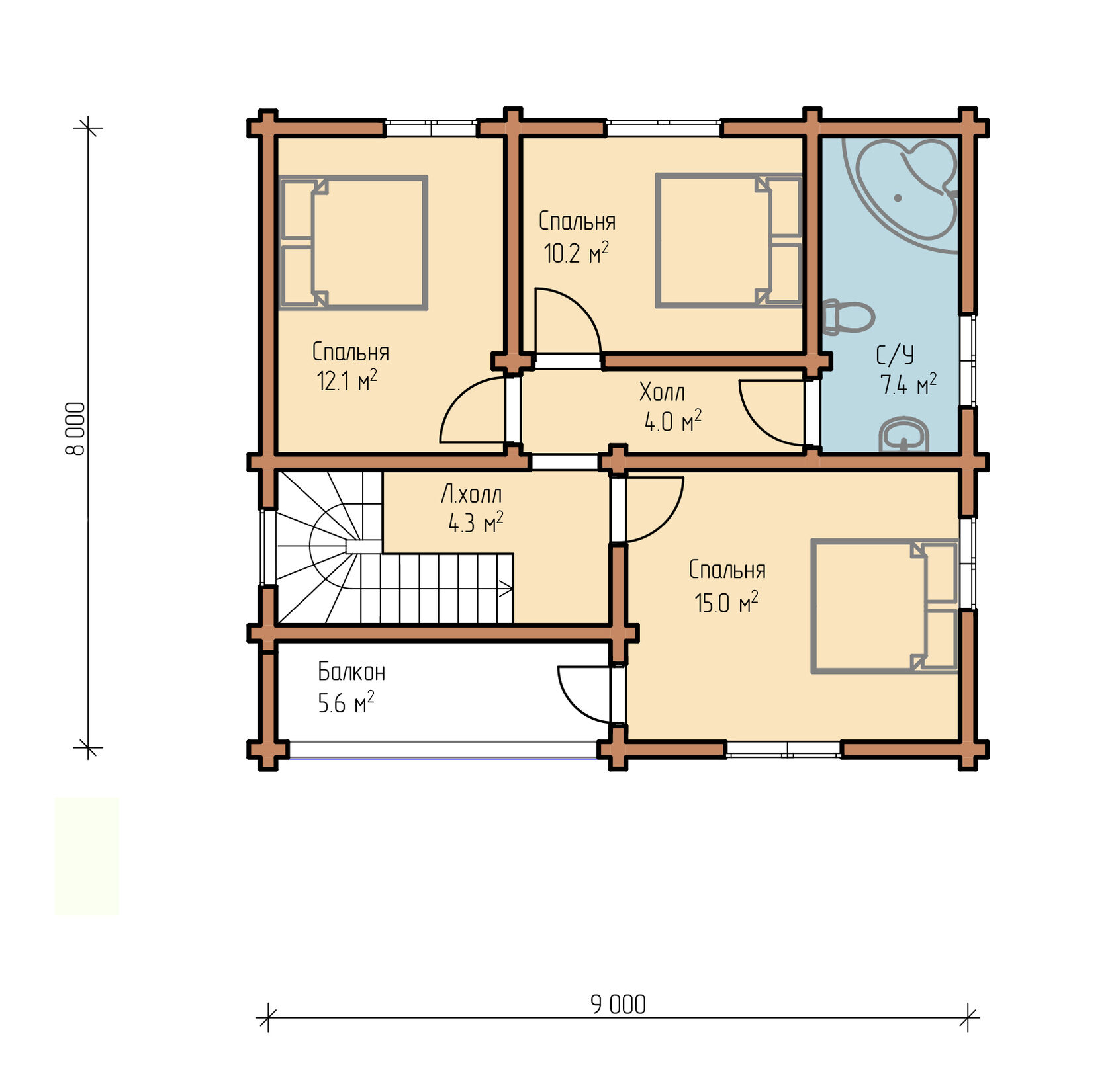 Дом из оцилиндрованного бревна "ОЦБ-120"