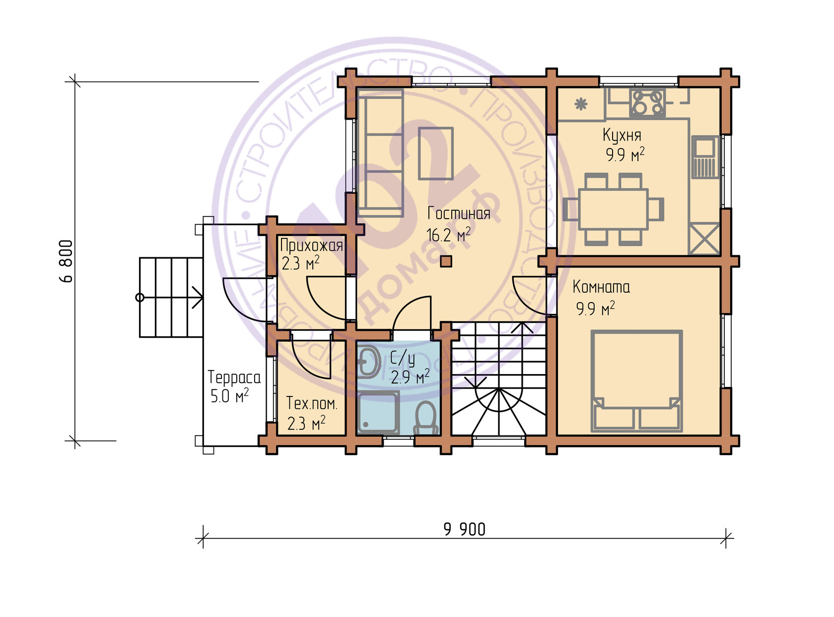 Дом из оцилиндрованного бревна "ОЦБ-120"